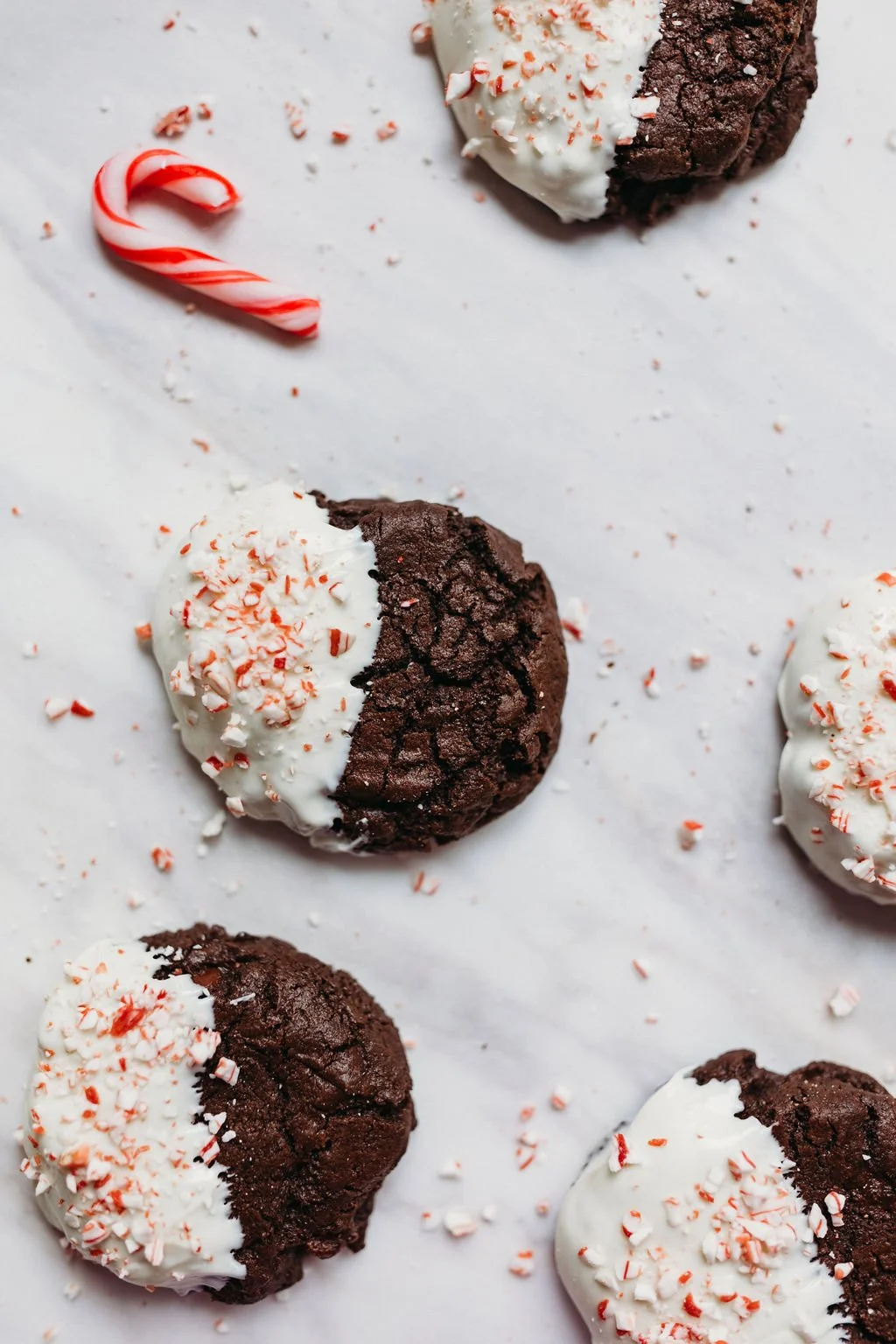 I have been making theses cookies for years. When the holidays come around it its time to start baking theses are the first thing everyone asks for. The rich dark chocolate coated with creamy white chocolate with a hint of peppermint will make even the coldest grench heart soften. Not to mention when there is so much to do around the holidays I love how easy these are.